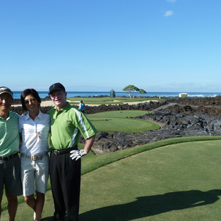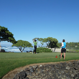 後半3ホールは海がらみ。ハワイでのゴルフを満喫するプレーヤーとスコアラー。